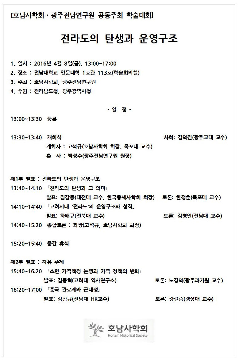 춘계 정기 학술대회 "전라도의 탄생과 운영구조"